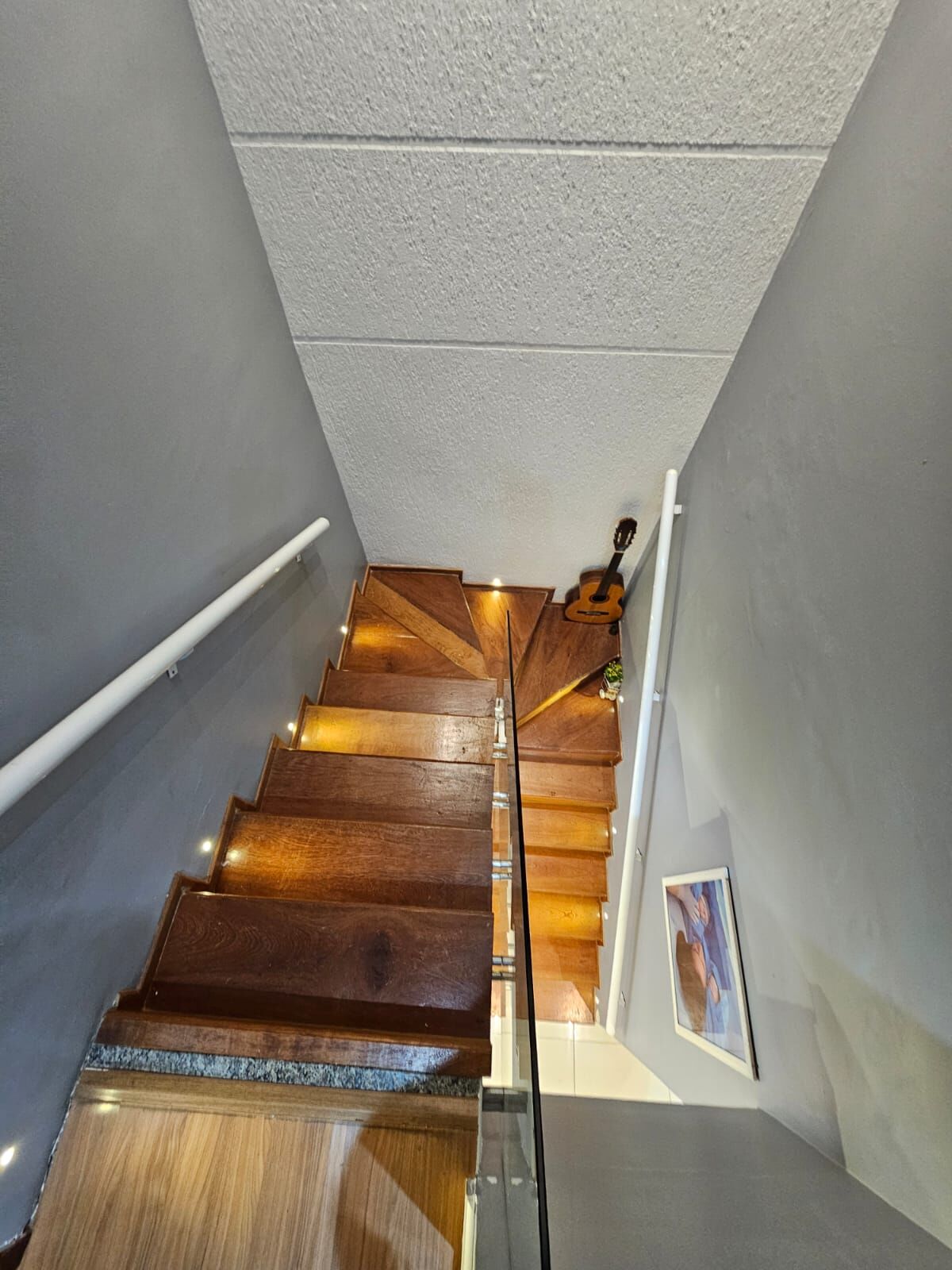 ✓ Escada no acabamento madeirado