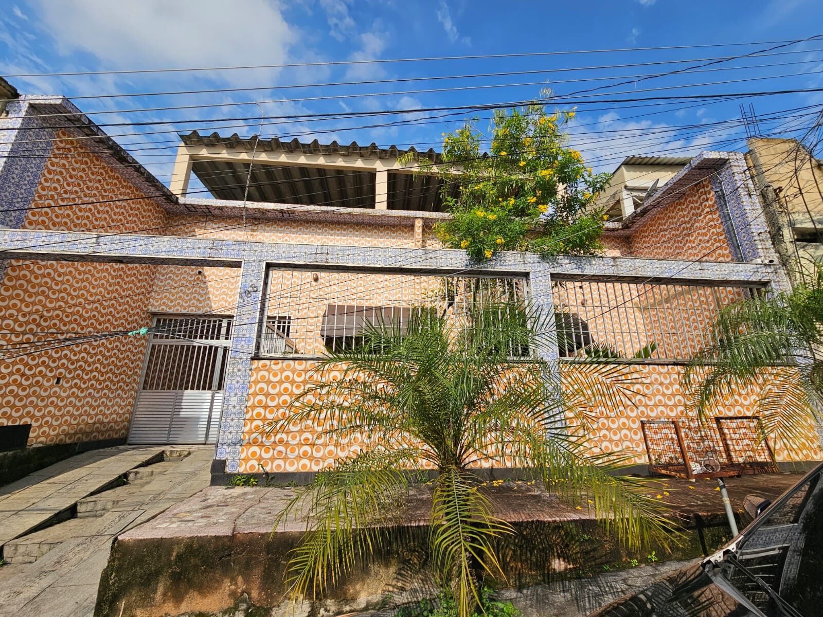 Na parte de cima tem outra casa de 02 quartos, sala, cozinha, banheiro e o terraço.